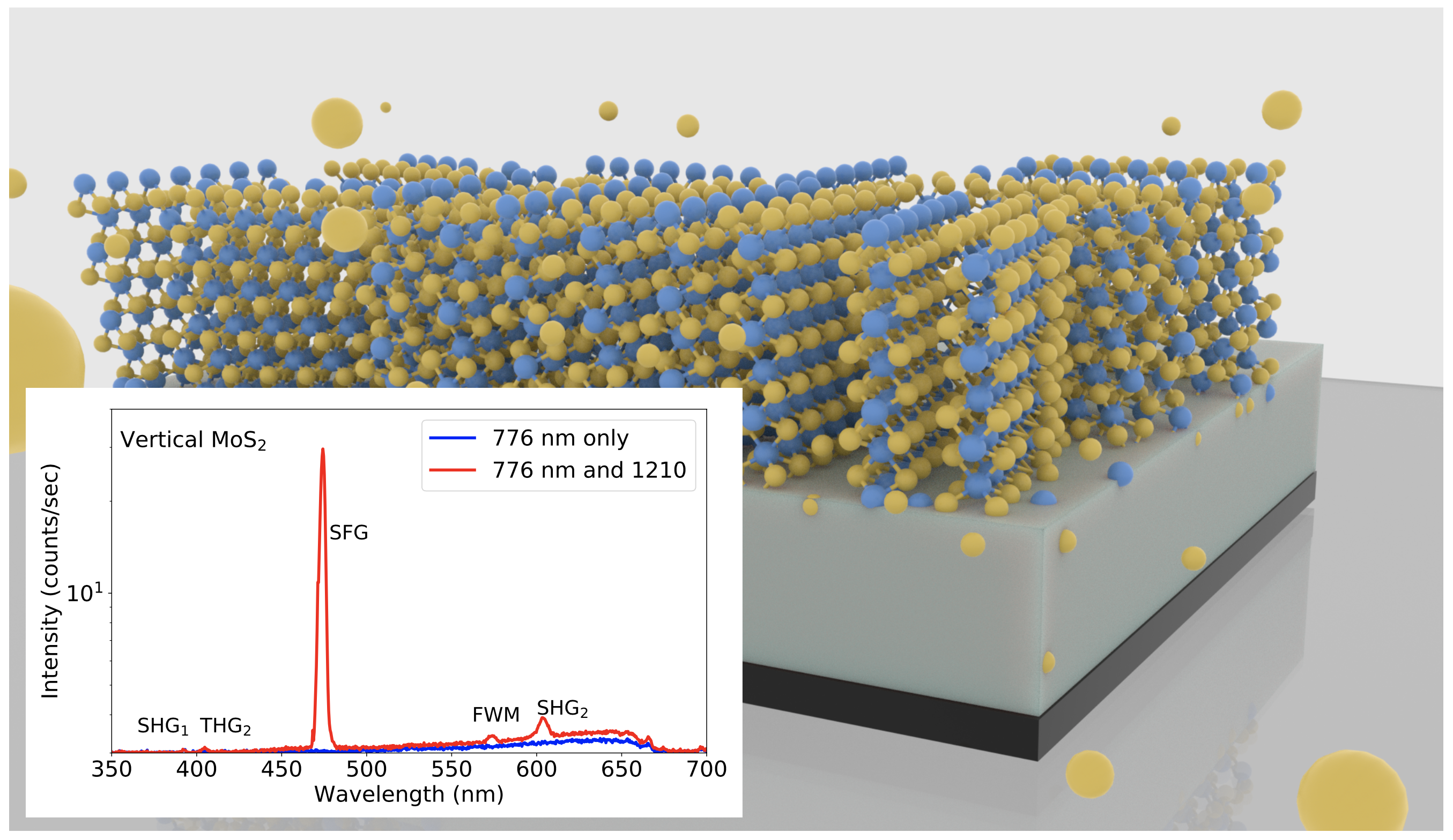Vertically-oriented MoS2 nanosheets for nonlinear optical devices.
